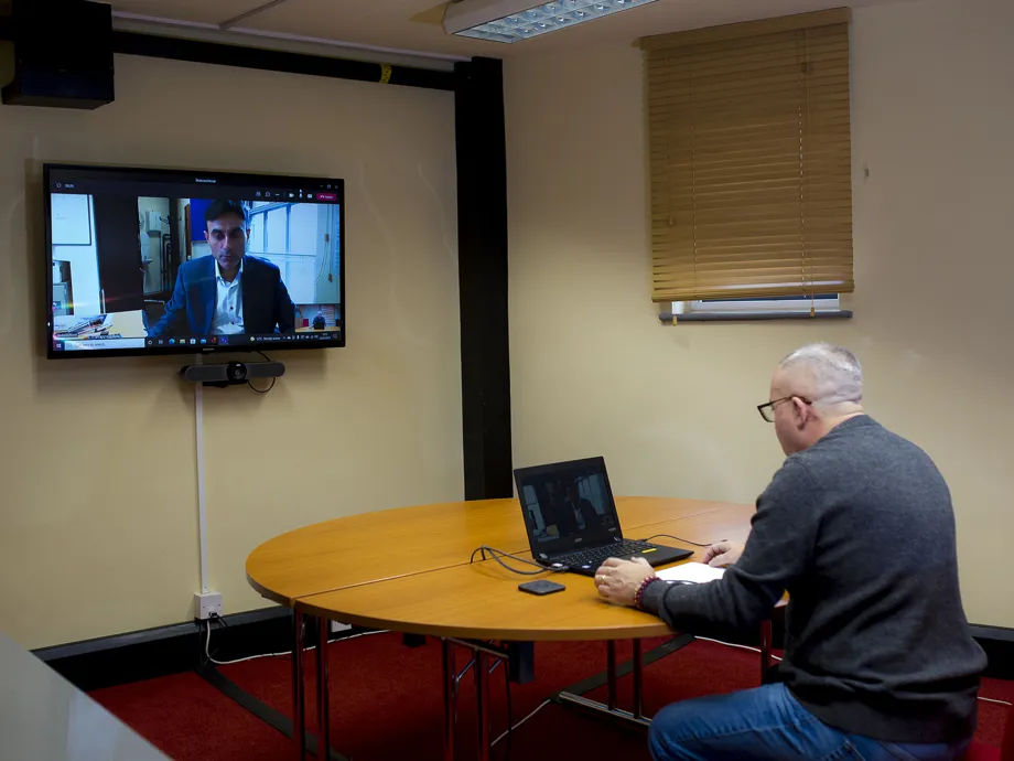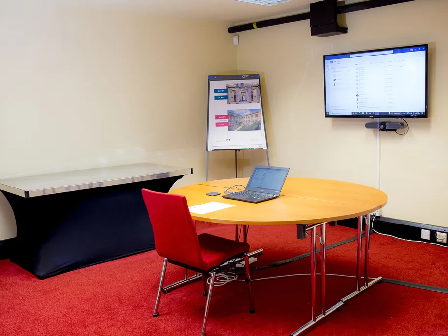 The Brindley Room offers Logitech Meetup equipment to enable hybrid meetings, ideal for when you have up to 4 people in the room and want to connect to others virtually.