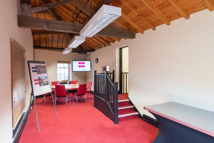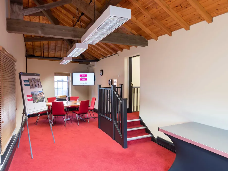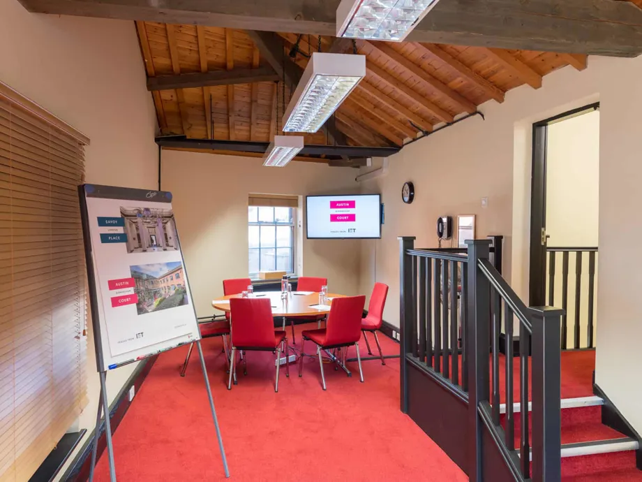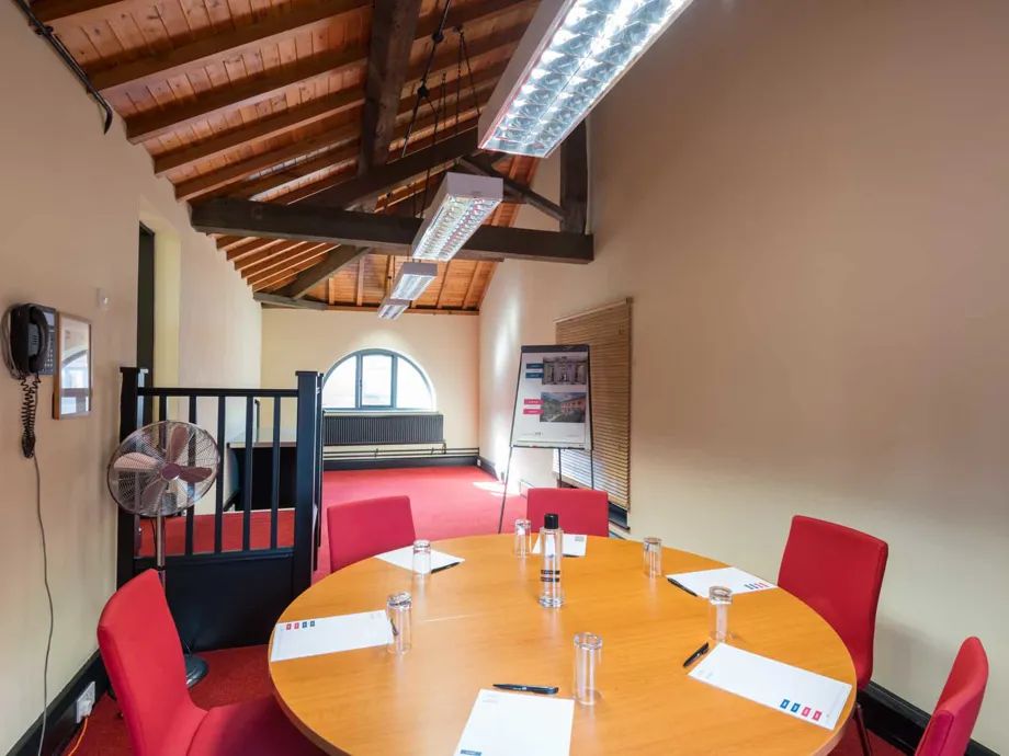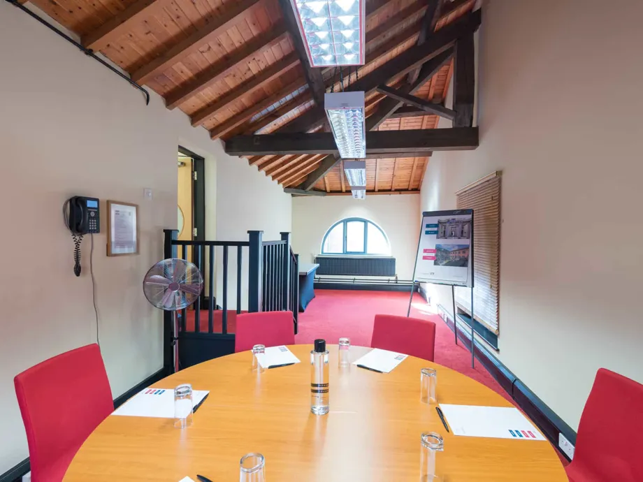The impressive arched windows give this room a unique feel, while the compact facilities provide the professionalism expected from a corporate meeting. Accommodating up to six guests, there is also room to host a refreshments station in the room.